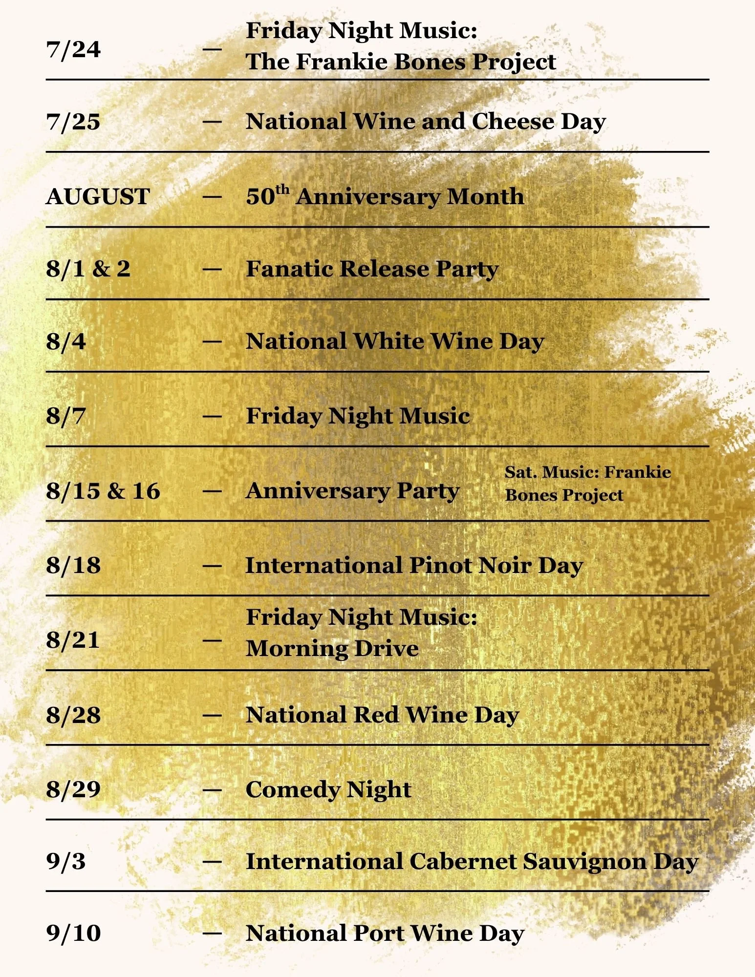 Preview our 50th Anniversary events!! Dates are subject to change.