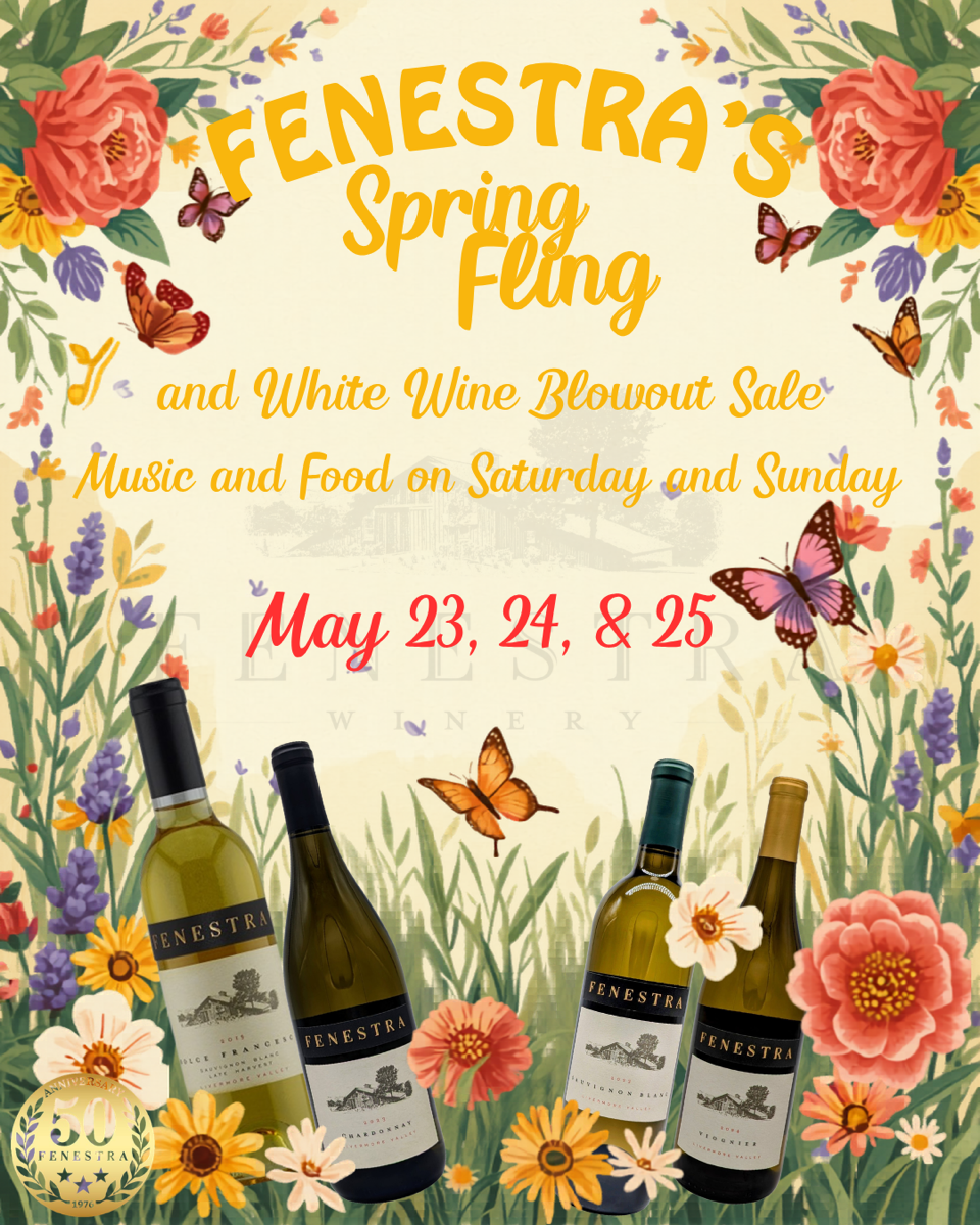 We are holding our annual Spring Fling and White Wine Sale May 23, 24 & 25th.