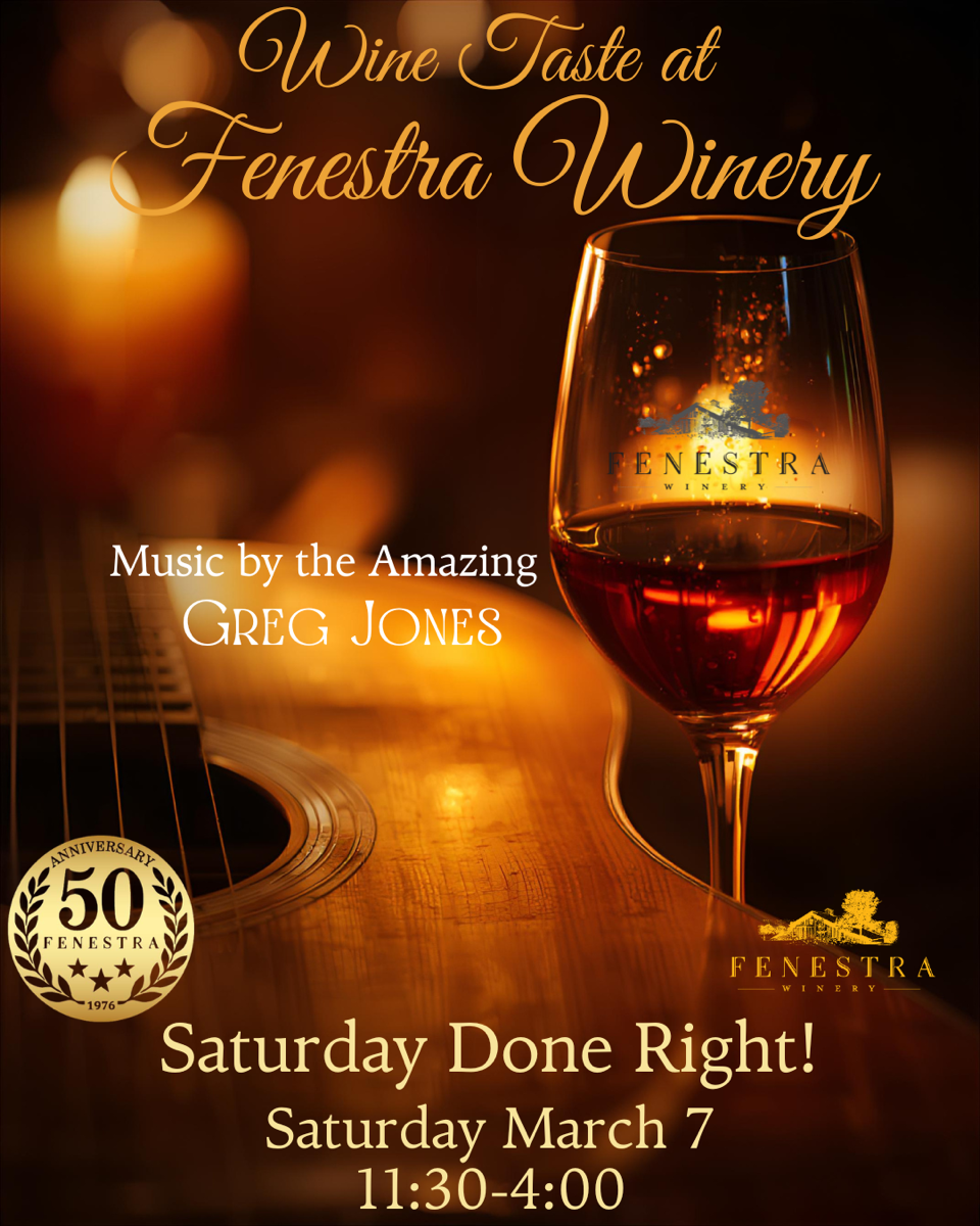 Who doesn’t love music and wine? Saturday, March 7, the talented Greg Jones is joining us at Fenestra during the day to play his acoustic guitar from 11:30-4:00. Come join the fun!
